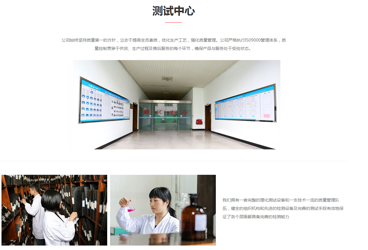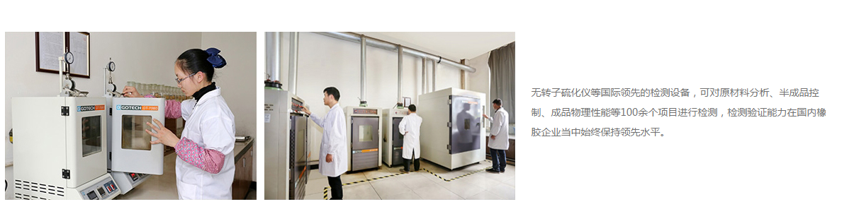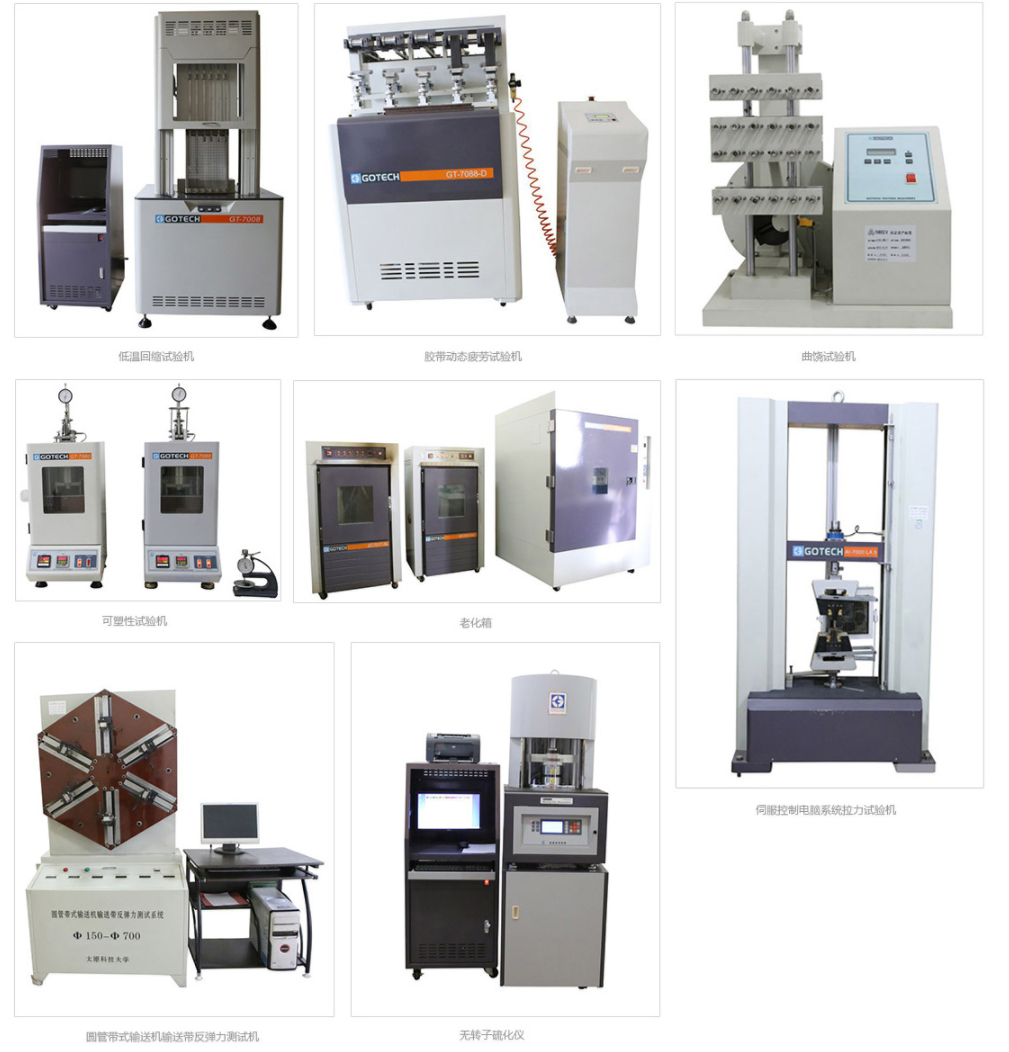 试验机、辊筒摩擦试验机、胶料滚筒磨耗试验机、高温老化试验箱、臭氧老化试验箱等高精度试验设备,从原材料、
